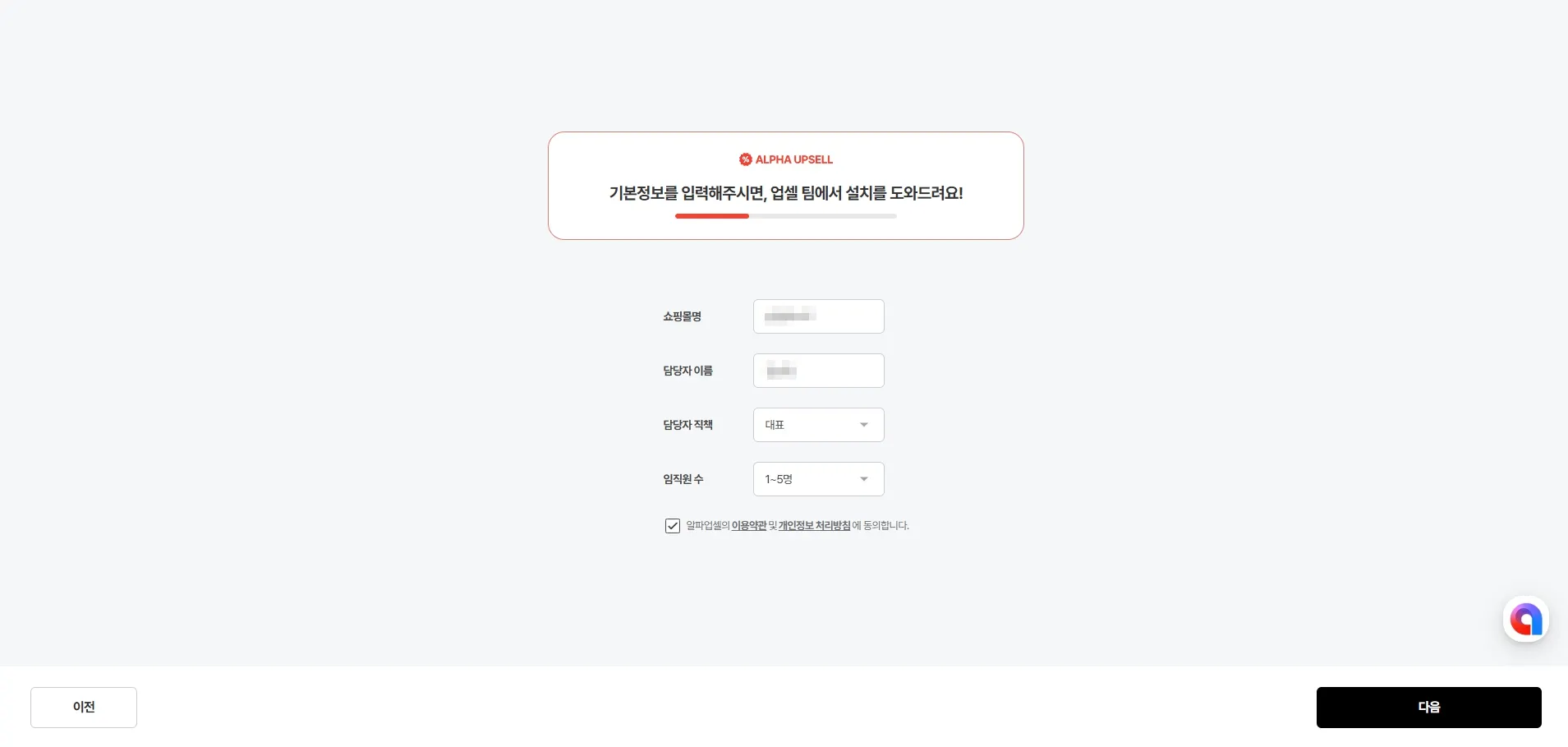 알파업셀 필수 정보 입력