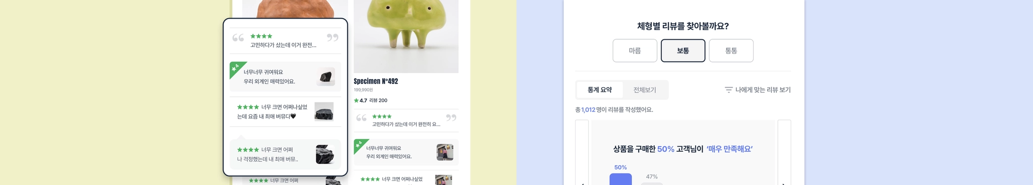 고객의 키, 체형, 피부타입, 견종 등 설문 리뷰의 답변을 기준으로 필터링 할 수도 있어요