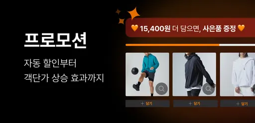 메인·구매 버튼·장바구니 페이지 등 원하는 위치에 적용 가능한 10종 위젯 제공