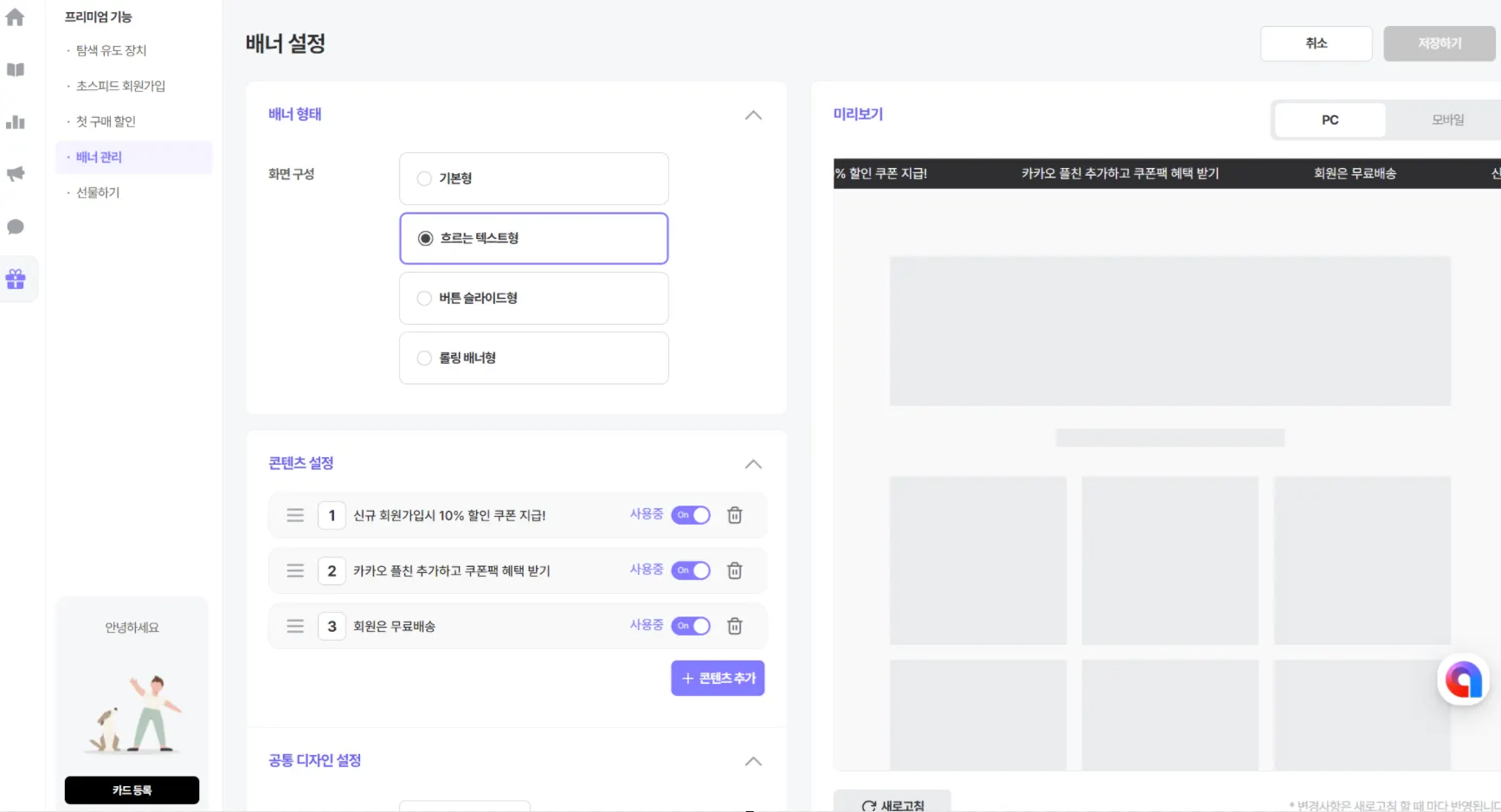 배너관리 설정 방법 (콘텐츠 배너)
