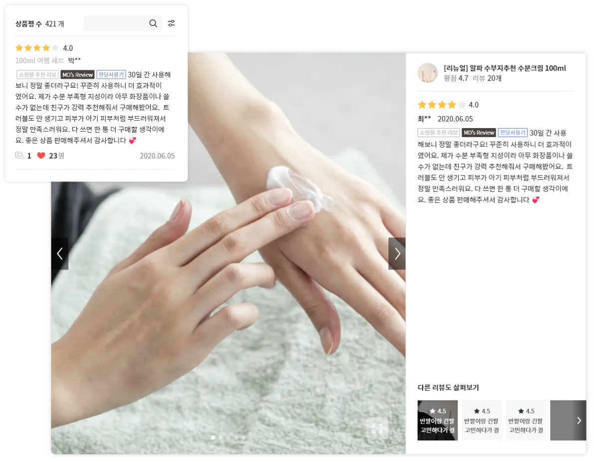 리뷰에 작은 이름을 붙여주면 리뷰에 대한 신뢰도를 더욱 높일 수 있으니
