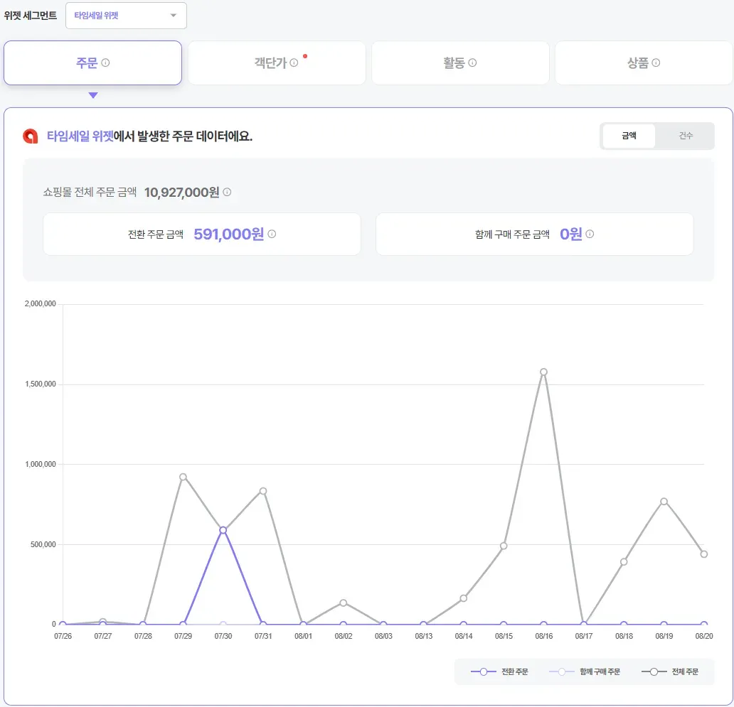 타임세일로 얼마나 많은 판매량이 발생했는지, 수치로 확인하실 수 있답니다