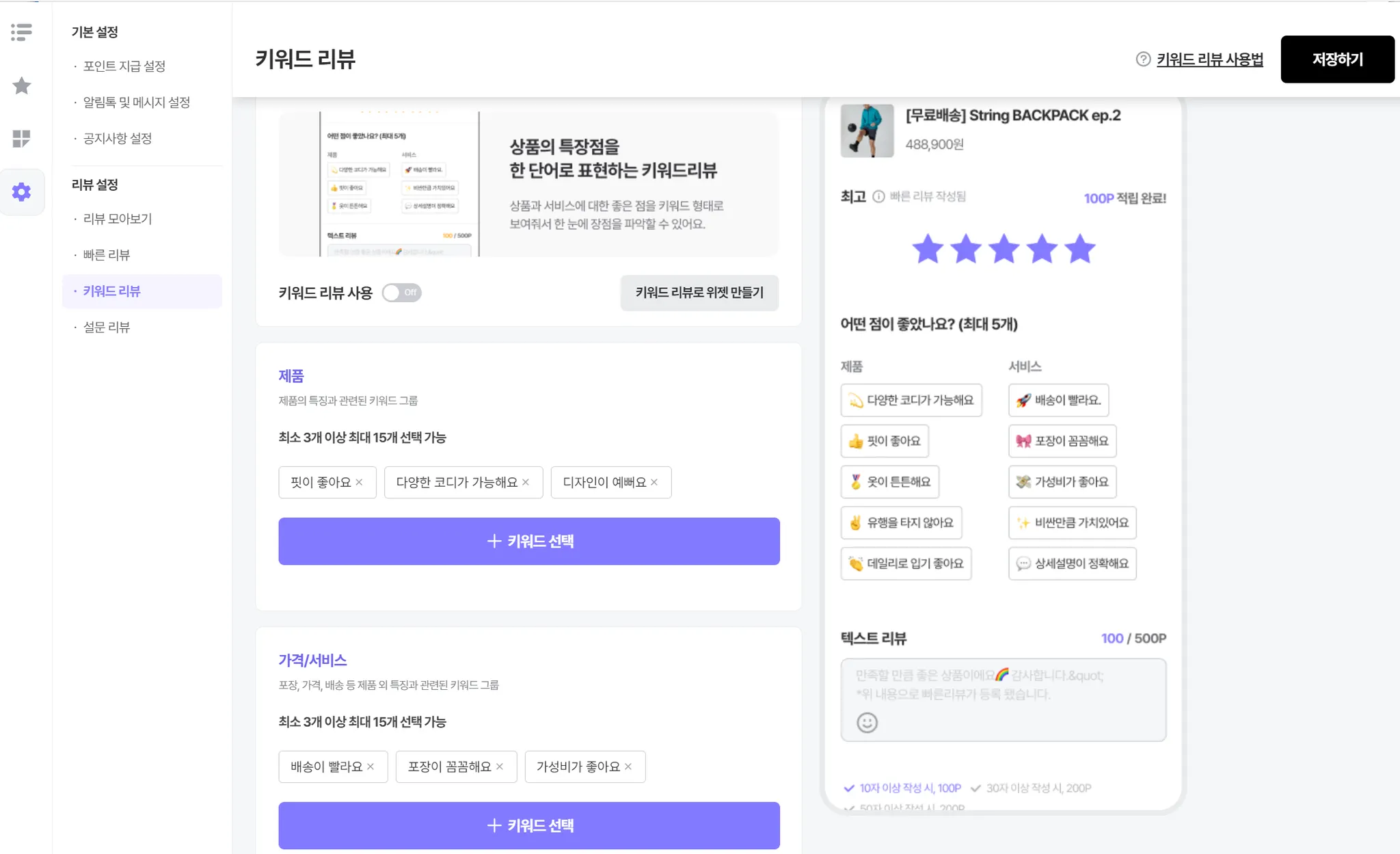 키워드 리뷰는 해당 설정이 활성화 된 시점부터 적용됩니다!