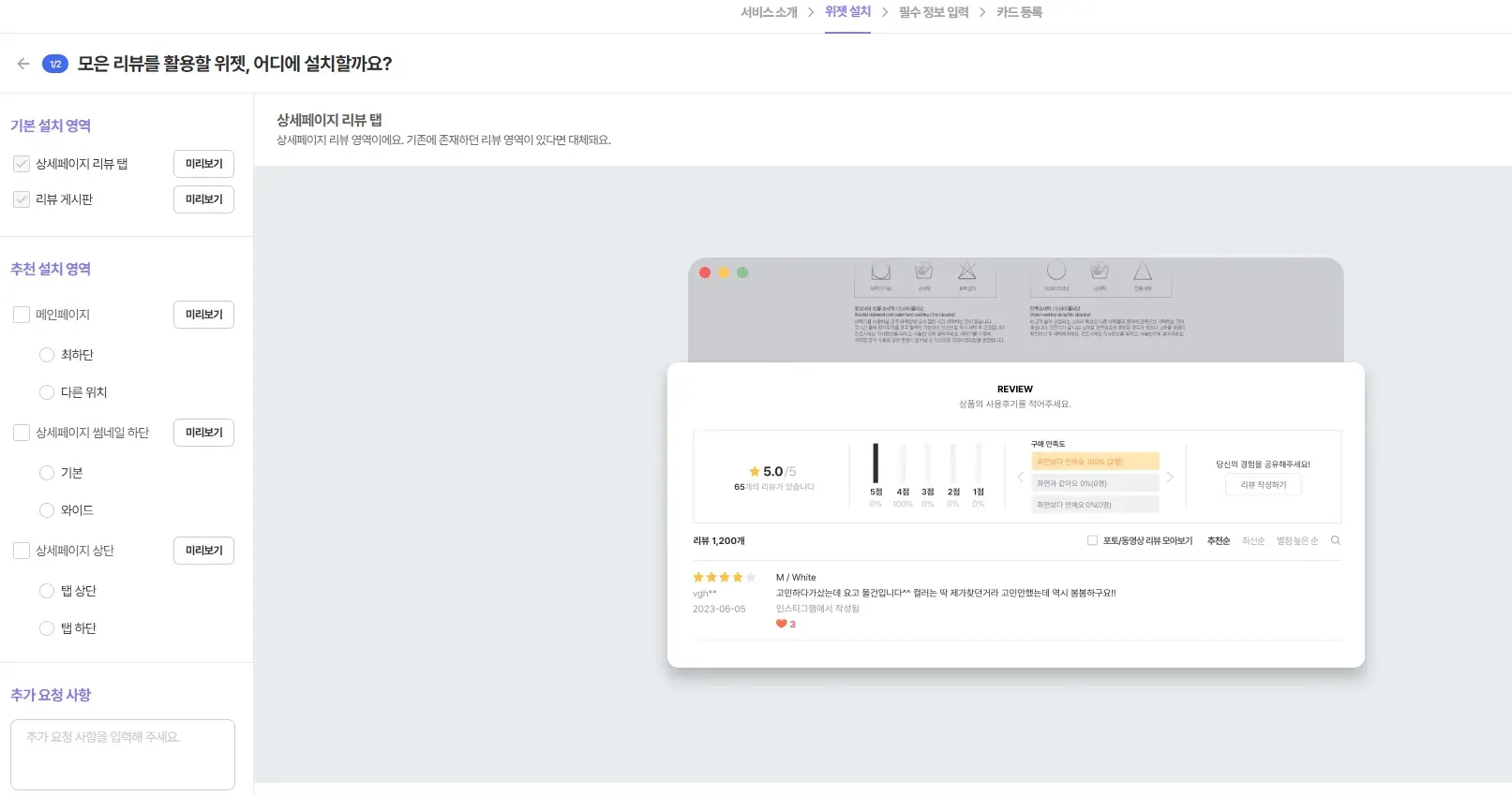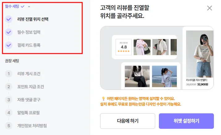 1. 리뷰 표시 위치 선택 (위젯 설치 위치 지정)