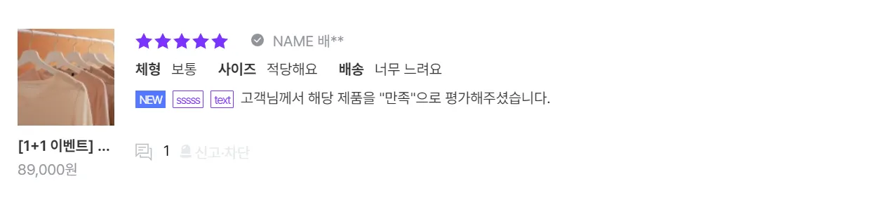 이렇게 설정이 완료되면 고객이 설문 리뷰를 작성하게 되고, 설문 리뷰는 위젯 내에서 보여지게 됩니다