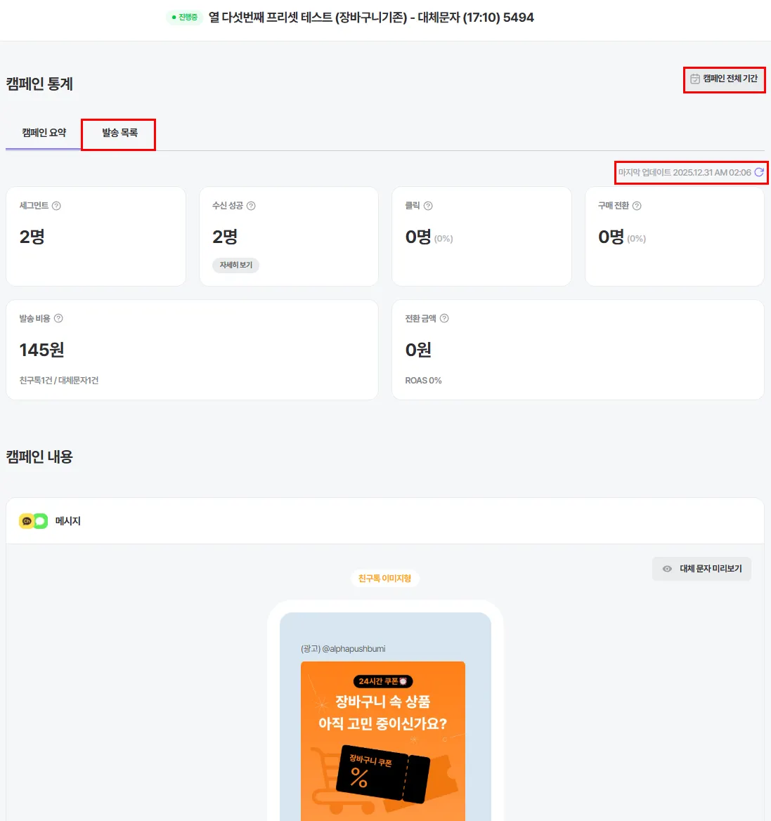 캠페인이 발송 될 친구톡 내용을 미리 보고 싶다면?