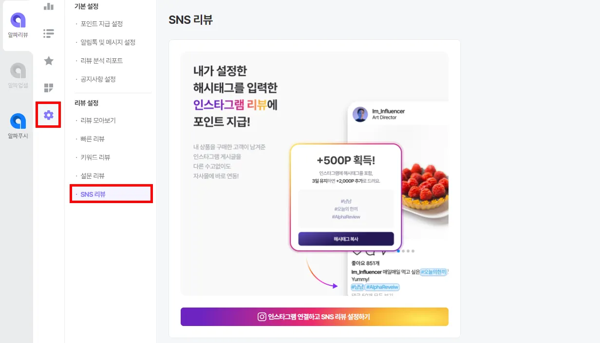 알파리뷰로 SNS 리뷰가 연동돼요!
