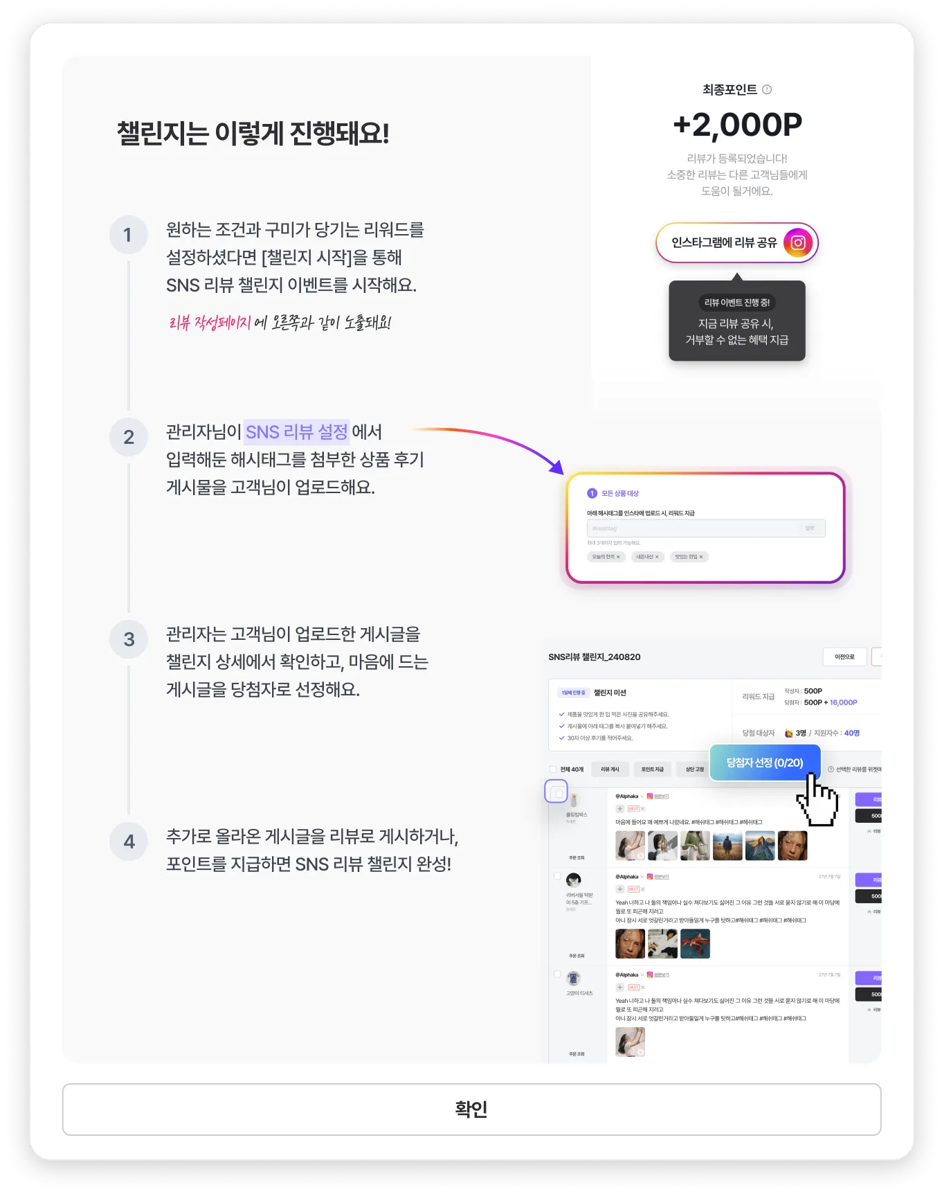 자사몰 구매 고객의 양질의 인스타 후기를 쉽게 모을 수 있도록