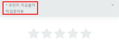 미검증 리뷰의 경우 리뷰 작성페이지 내에서 * 포인트 지급 불가 문구가 노출됩니다