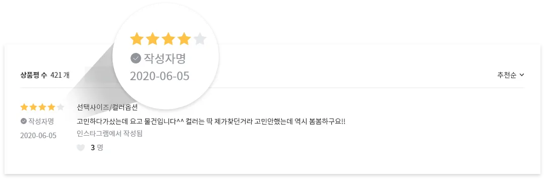 기본적으로 실제 구매자가 작성한 리뷰에 한해 검증된 리뷰라는 아이콘이 표시됩니다