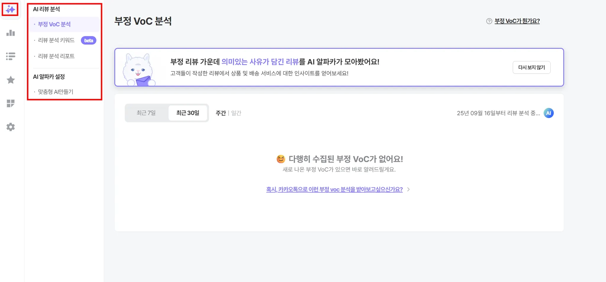 별도로 표시하여 노출하는 VoC 분석 기능을 제공해 드리고 있어요!