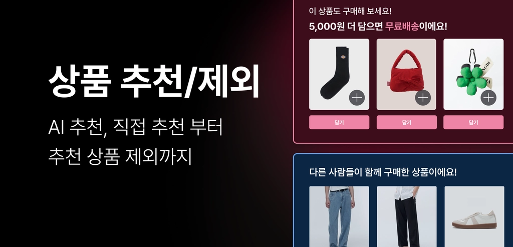 메인·구매 버튼·장바구니 페이지 등 원하는 위치에 적용 가능한 10종 위젯 제공