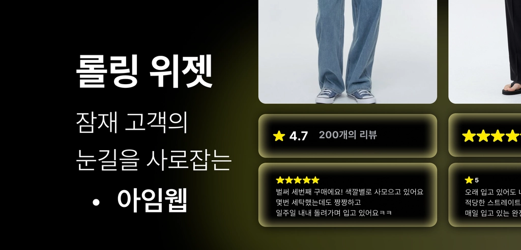 아임웹에서는 유료 위젯(롤링/브리핑/세일즈 티커) 사용이 제한됩니다. (이 외에 스마트 스토어 리뷰 연동을 비롯한 기능 및 설정은 동일하게 제공 됩니다.)