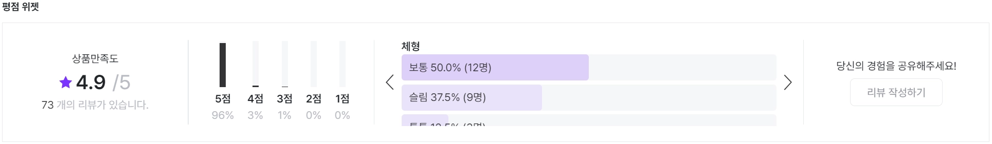 이렇게 설정이 완료되면 고객이 설문 리뷰를 작성하게 되고, 설문 리뷰는 위젯 내에서 보여지게 됩니다