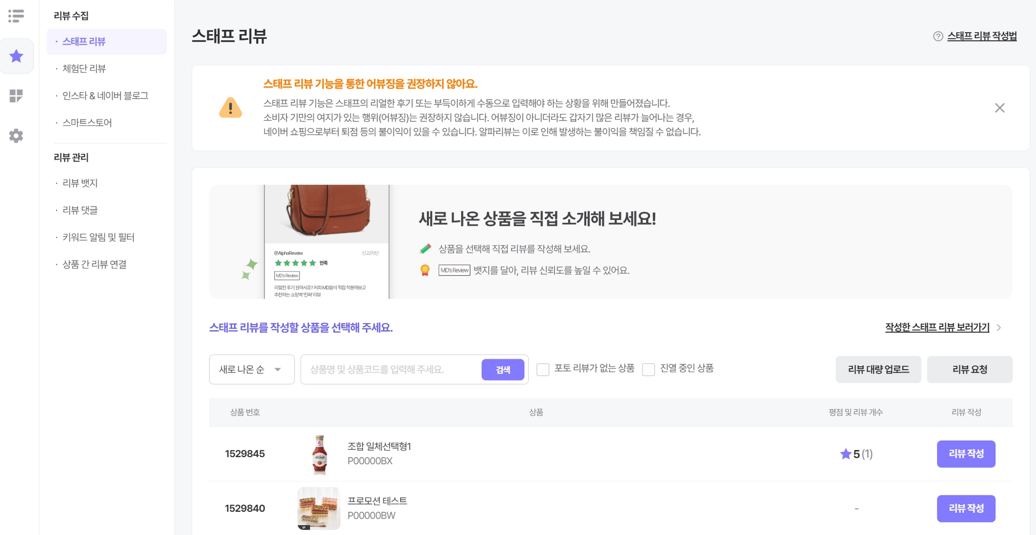 스태프 리뷰 작성 기능은 쇼핑몰 관리자 등이 직접 작성하는 리얼한 리뷰를 작성하거나