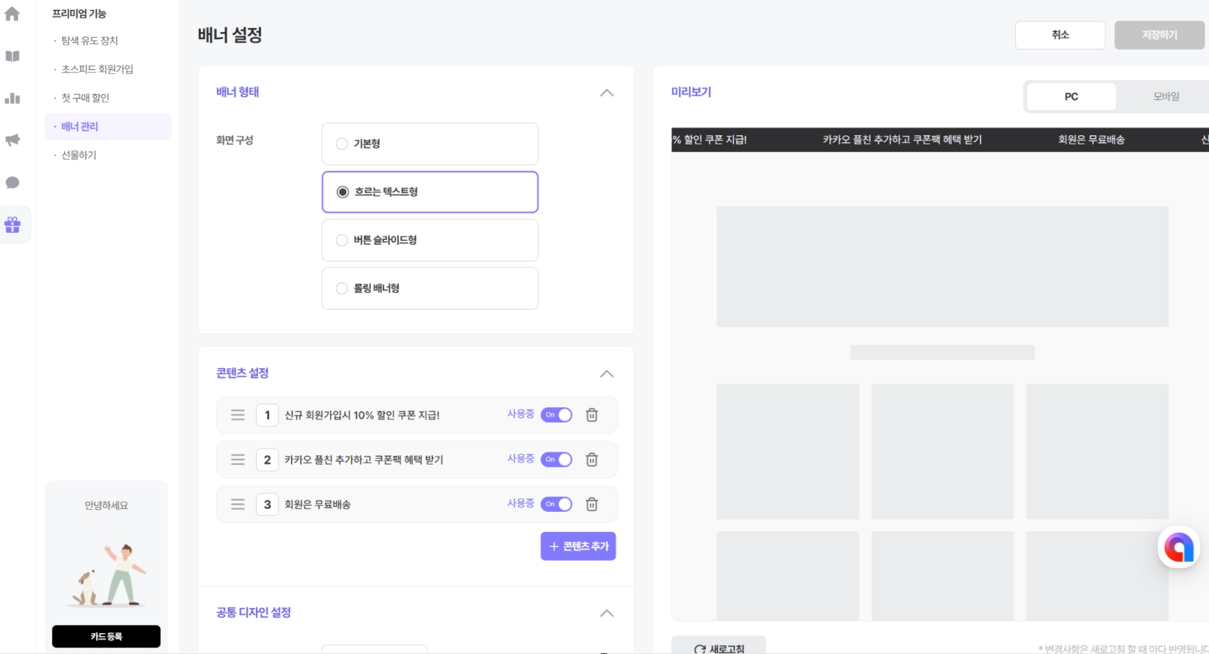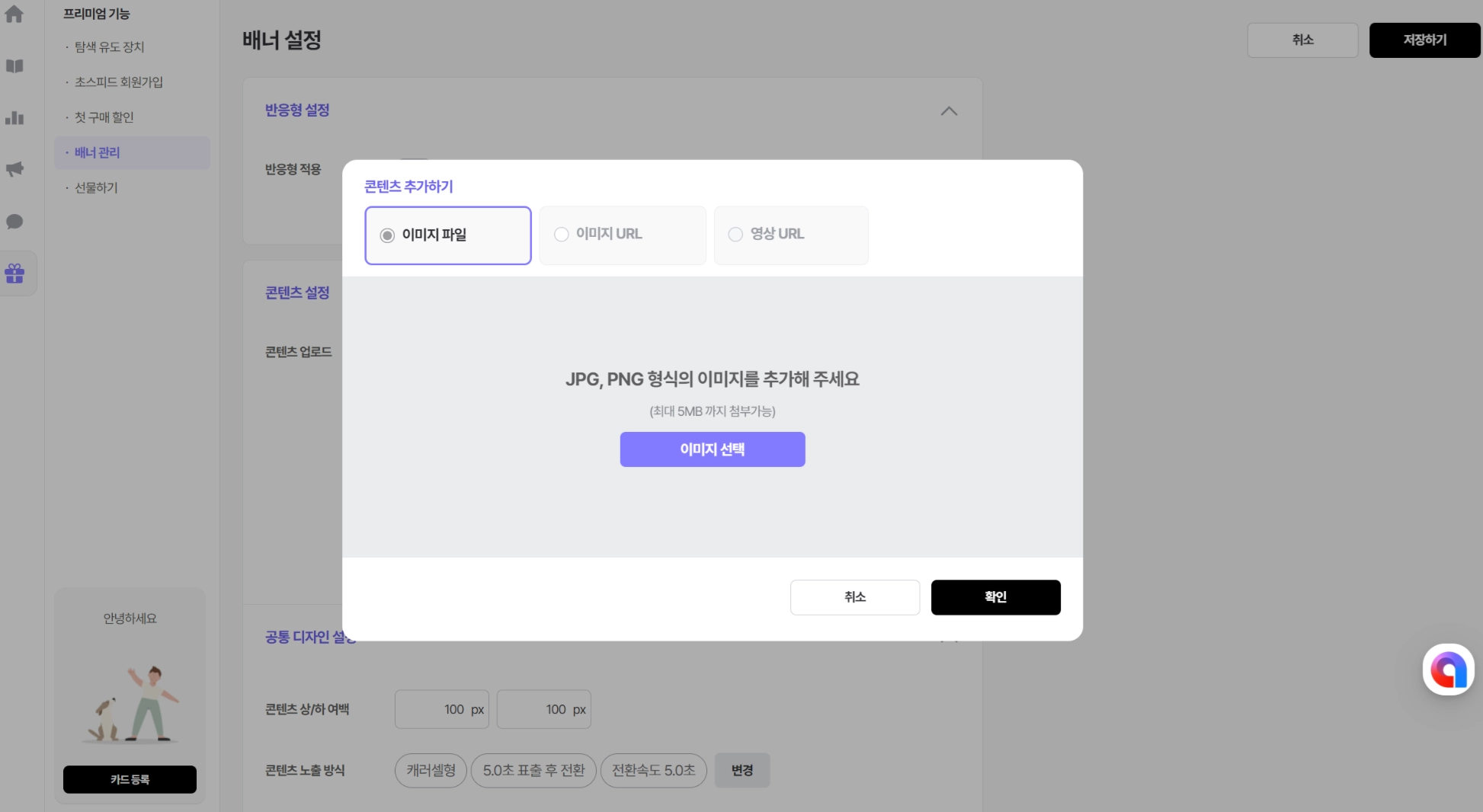 콘텐츠 배너란 이미지/동영상을 페이지의 고정 된 위치에 삽입하는 기능이에요