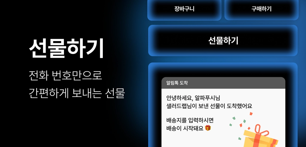 업계 최저 수수료! 받는 사람 주소를 몰라도 선물이 가능한 선물하기