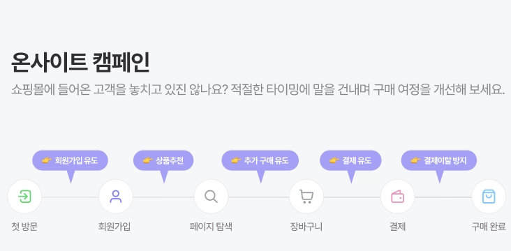 온사이트 캠페인이란 쇼핑몰에 방문한 고객에게 각 트리거 조건에 맞는 고객을 대상으로