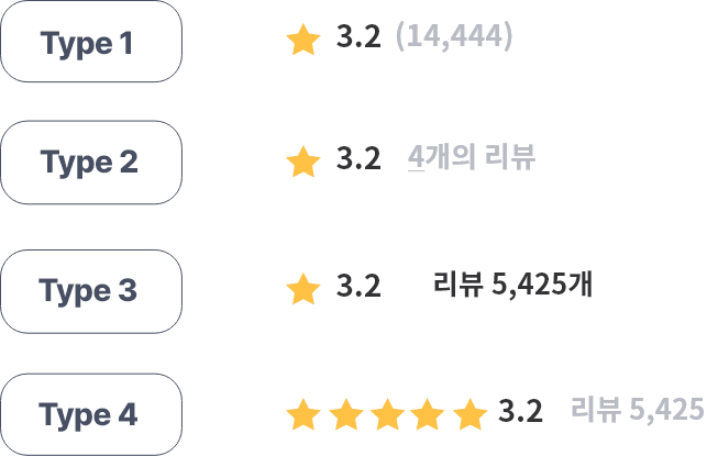 평점과 리뷰 개수가 보여지는 영역의 디자인을 선택할 수 있으며, 정렬 (왼쪽, 가운데, 오른쪽) 또한 선택할 수 있습니다.
