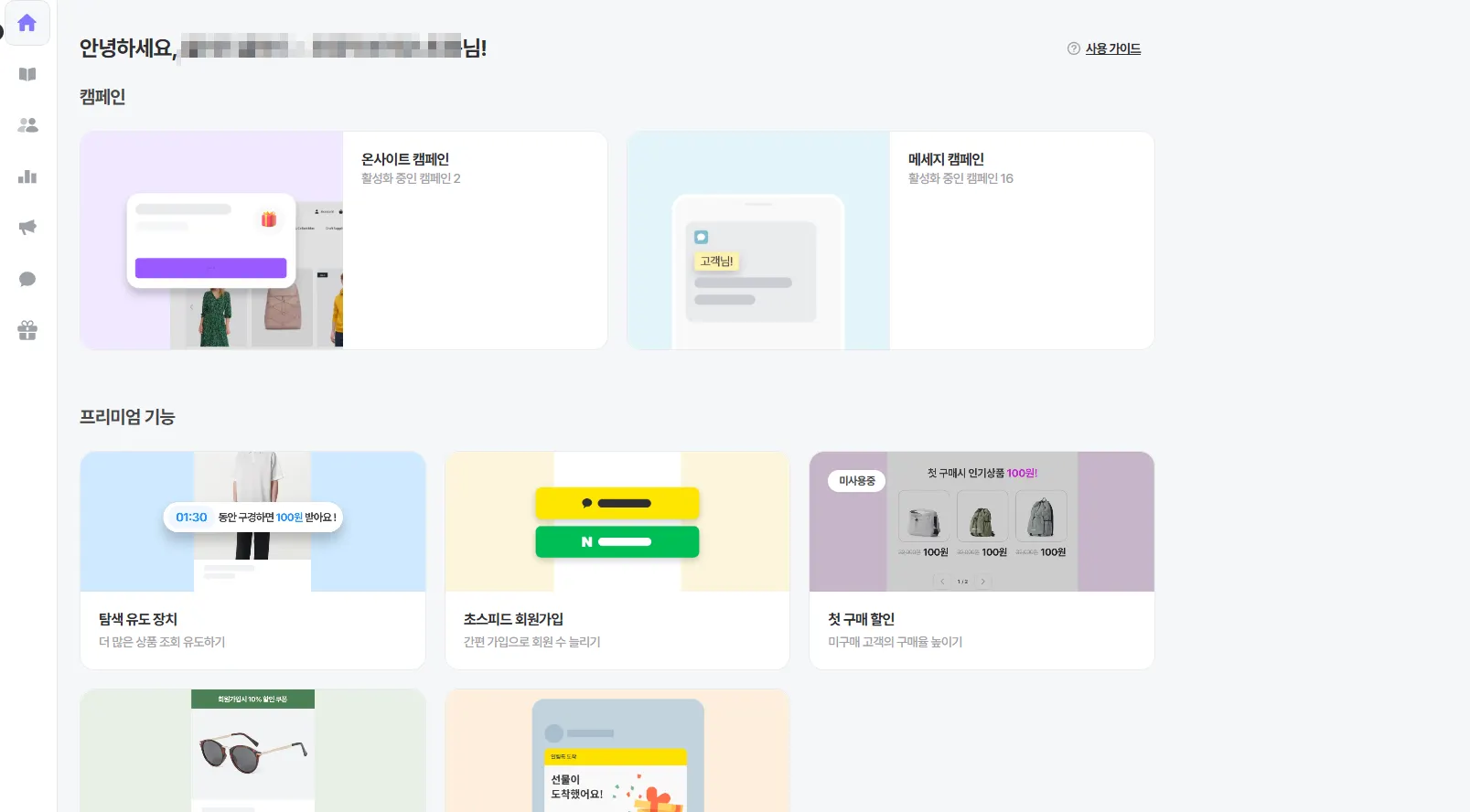 해지 시점에 모든 기능이 비활성화 처리되므로, 원하시는 기능은 대시보드에서 직접 활성화하여 사용해 주세요.