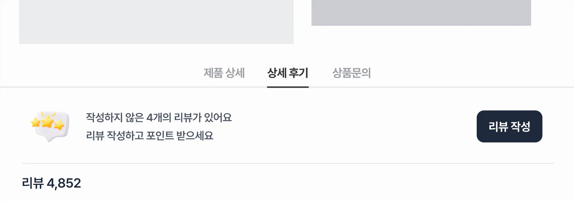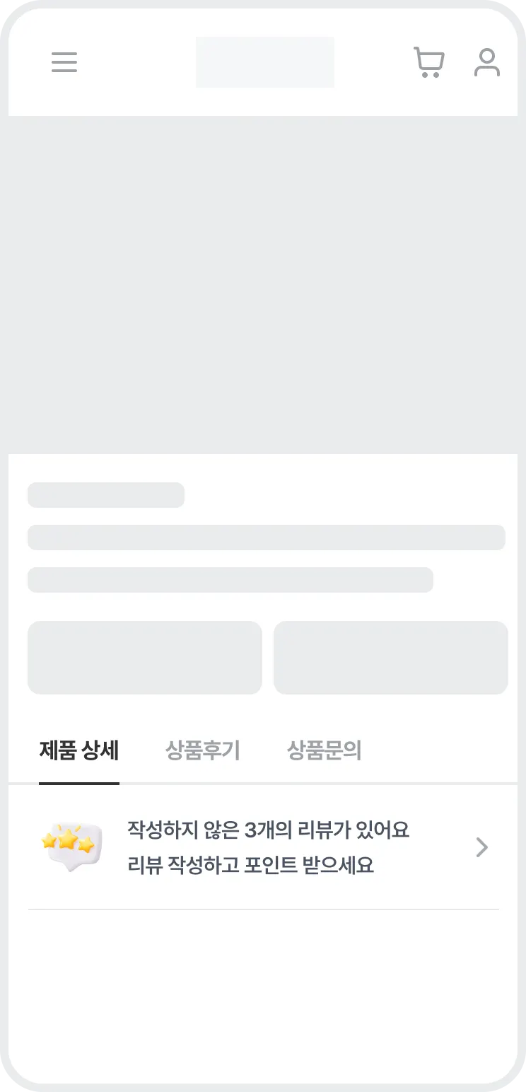 상품을 구매한 고객이 리뷰를 작성하지 않은 상태로 쇼핑몰에 방문했을 때 상품의 상세페이지 내에서 표시됩니다