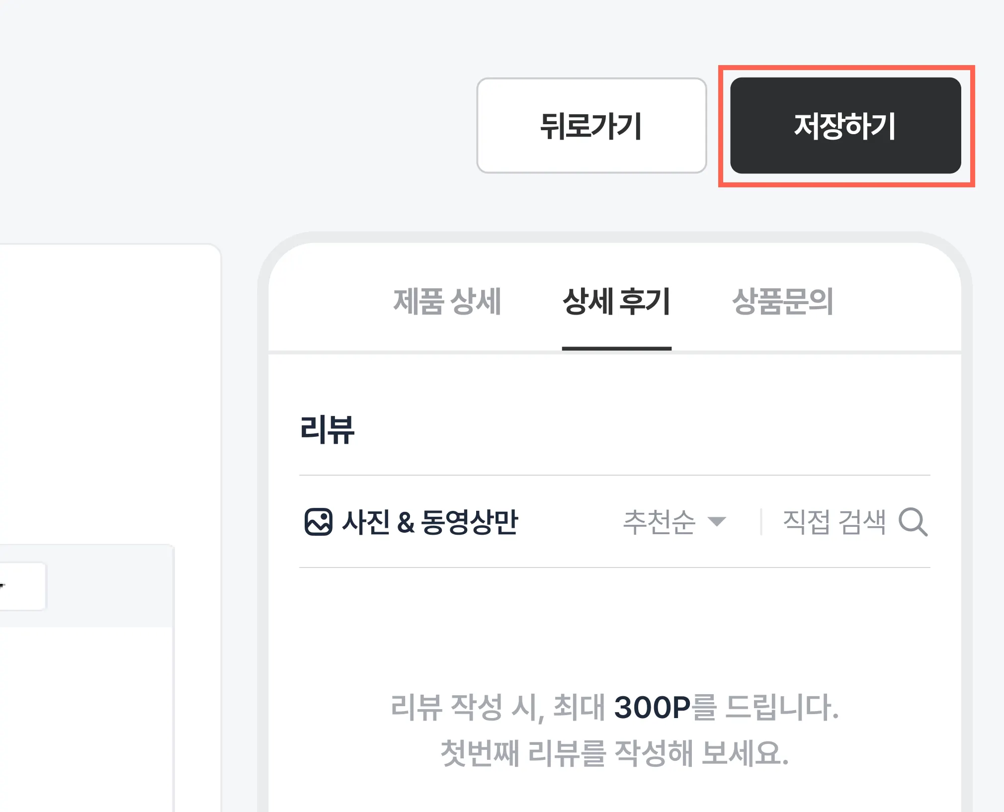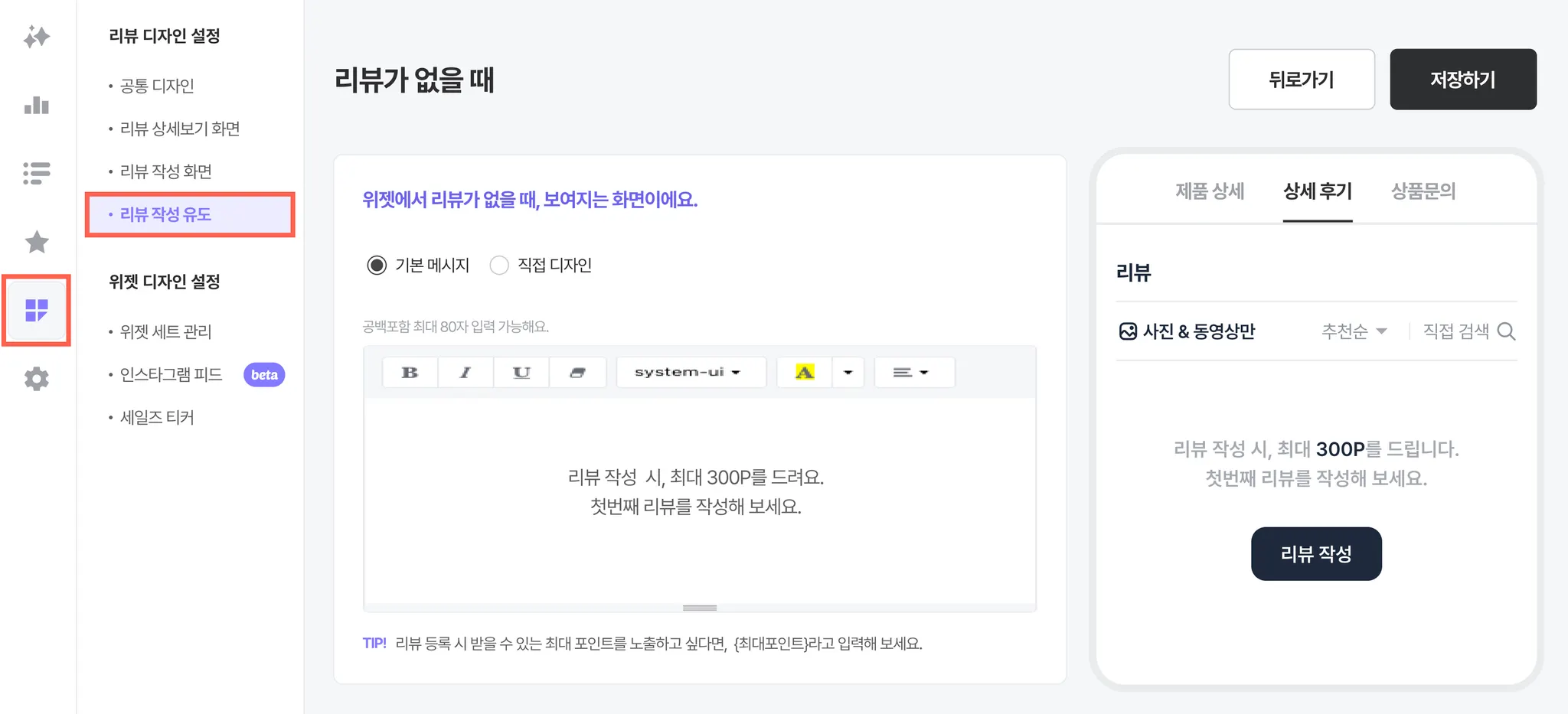 접속 경로: [디자인 설정 > 리뷰 작성 유도 > 리뷰가 없을 때]