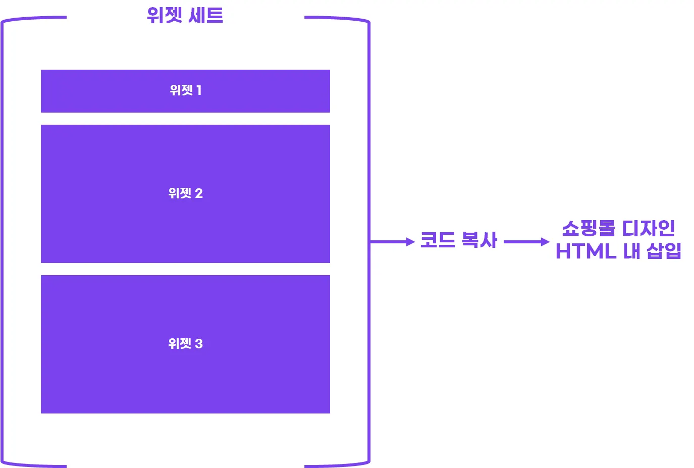 (위젯 세트를 만드는 것만으로는 쇼핑몰에 노출되지 않습니다! 반드시 html 내에 위젯 코드 삽입까지 완료 해주셔야해요)