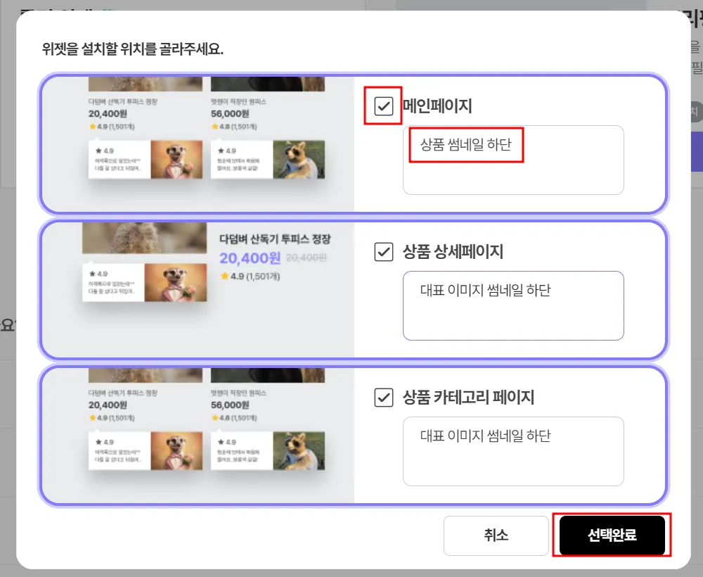 쇼핑몰 톤앤매너에 맞춰 위젯 디자인 등을 모두 선택할 수 있습니다.