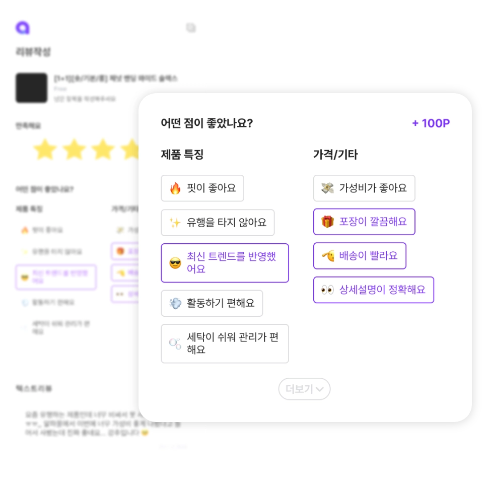 상품과 어울리는 키워드만 고르면 리뷰 작성 완료