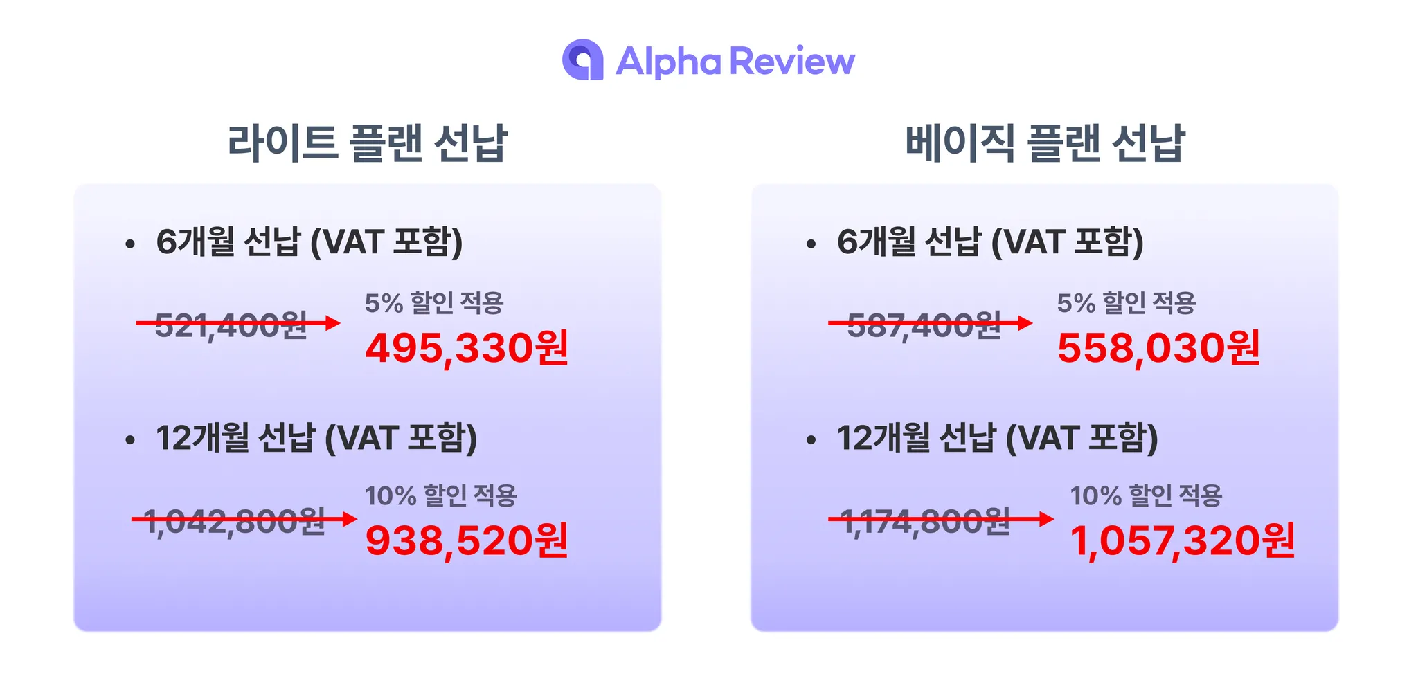 알파리뷰의 사용료는 최근 1개월의 주문 건 수에 따라 달라지게 됩니다!