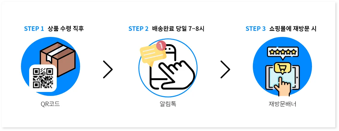 고객은 상품 수령 직후 상품과 함께 동봉되어있던 QR코드를 통해 리뷰를 작성합니다. 알파리뷰는 쇼핑몰의 리뷰 작성 페이지로 이동 가능한 쇼핑몰 별 고유 QR코드를 제공하고 있습니다. QR코드를 택배에 동봉해 고객에게 발송하면, 상품 수령 직후 아주 간단한 절차로 리뷰를 작성하게 돼요