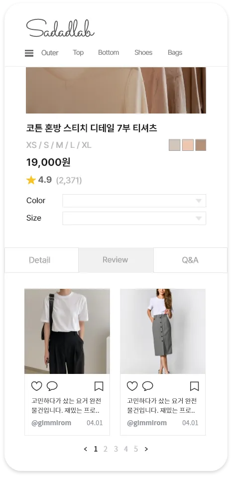 SNS 상에 작성 된 협찬, 체험단, 인플루언서의 게시물을 쇼핑몰에 노출해보세요